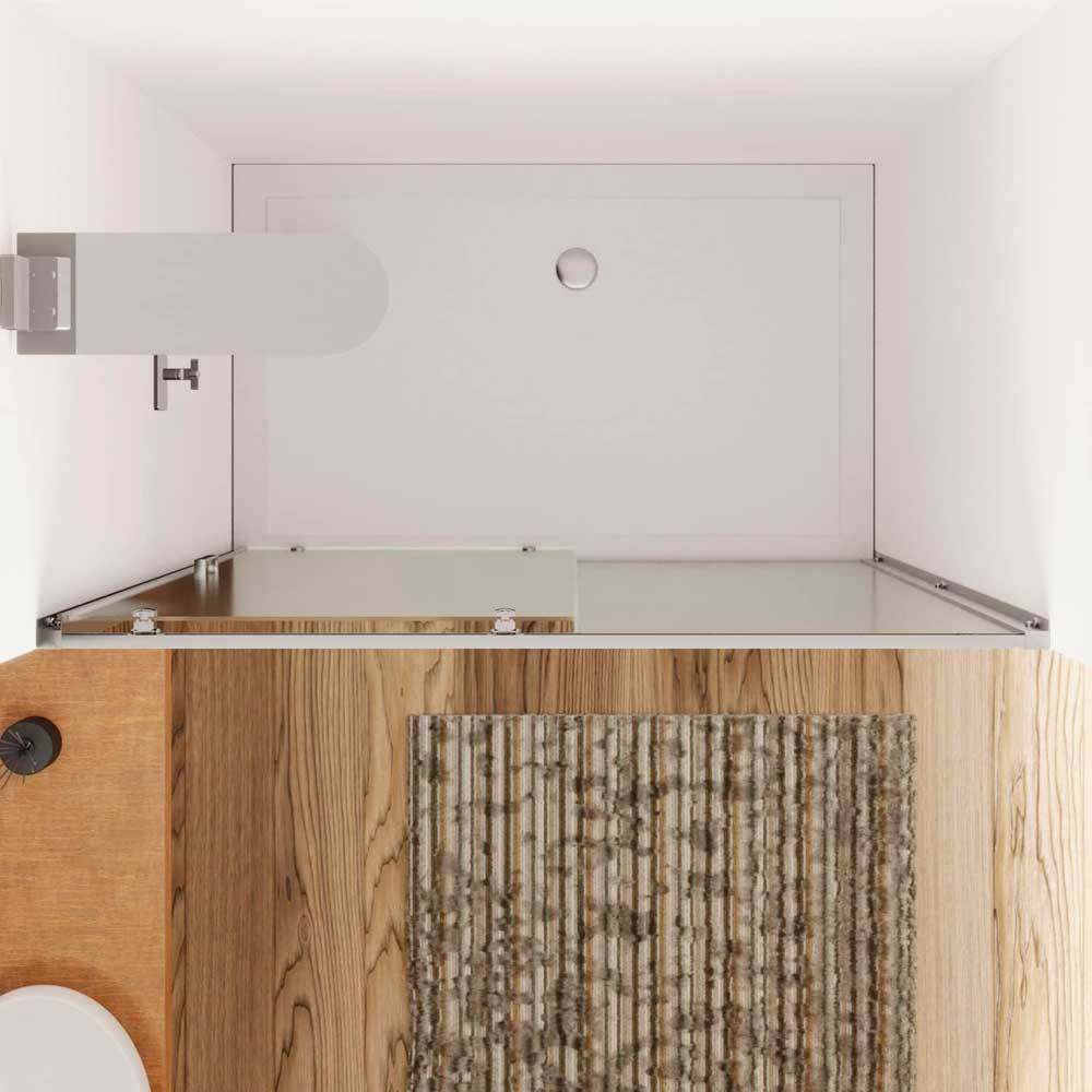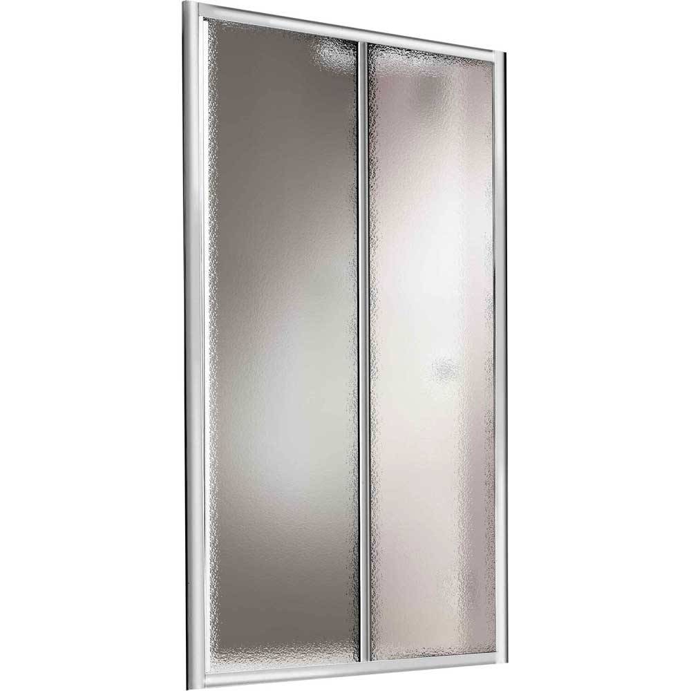 Porta doccia scorrevole, con 1 anta fissa e 1 scorrevole. Profilo in alluminio Cromo pesante. Finitura pannello: 3 mm STAMPATO C. Nota: disponibile lato fisso nostro articolo 00346. Non è consigliato l'uso di due pareti fisse.