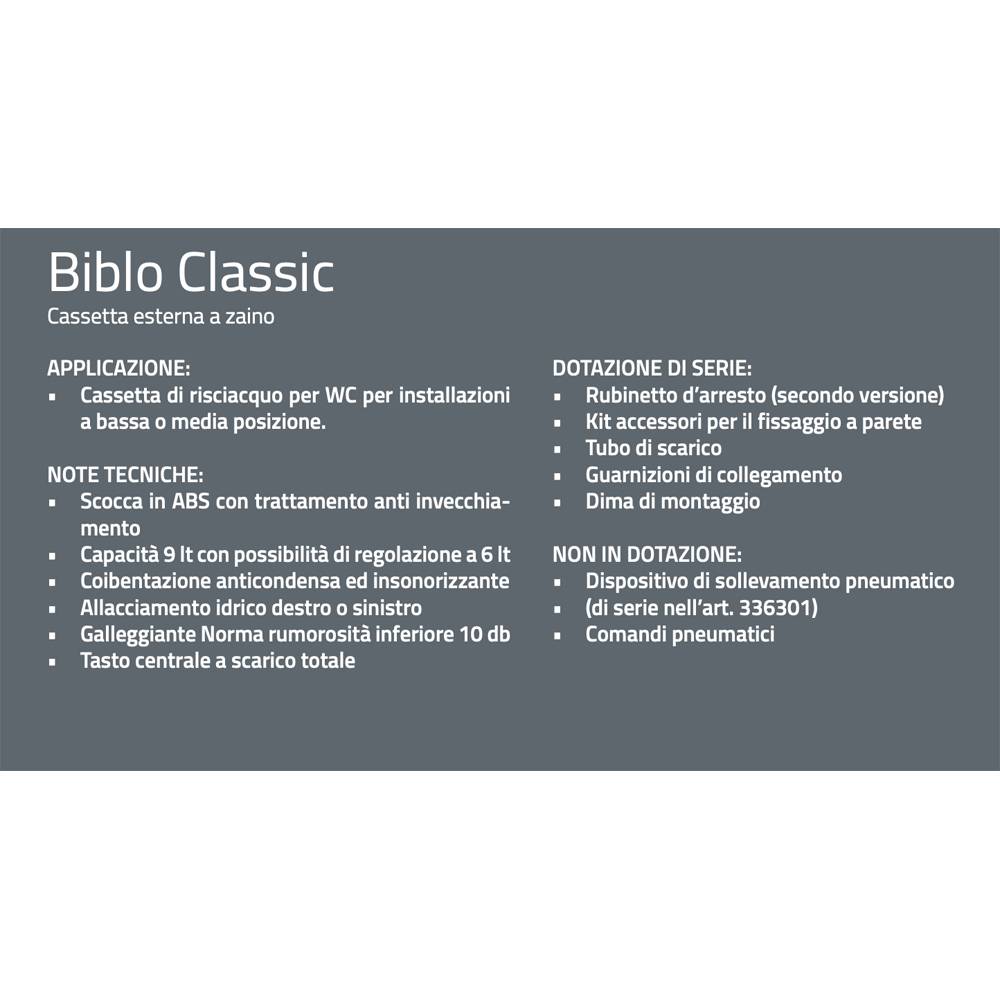 | 0078102 | CASSETTA DI SCARICO A ZAINO "BIBLO CLASSIC" MONOTASTO Bianca 336311