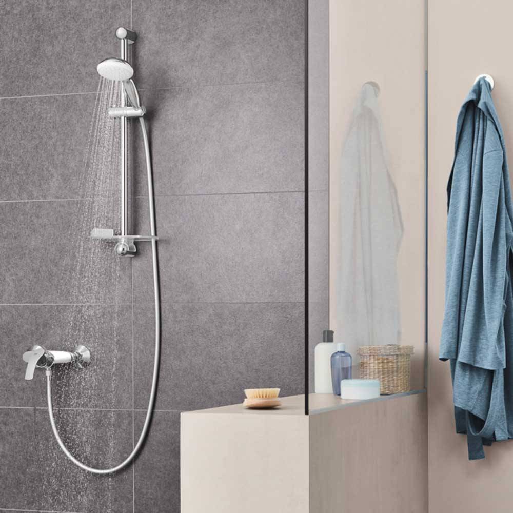 - Manopola doccia (art. 27 597); - Asta doccia da 600 mm (27 523 001); - Flessibile Relexaflex da 1750 mm (28 154 002); GROHE DreamSpray per un getto sempre perfetto. Sistema anticalcare SpeedClean Bordo in silicone antiurto