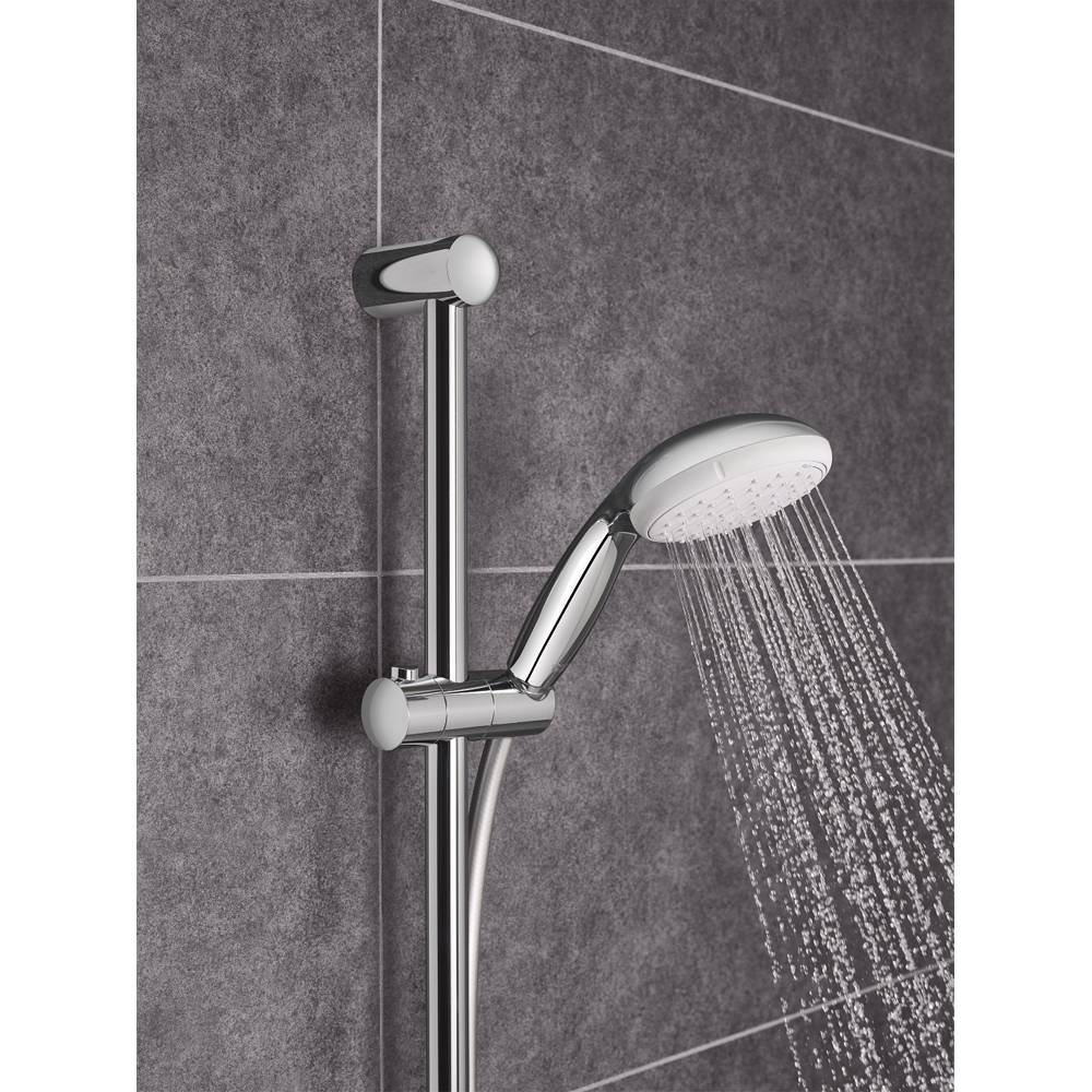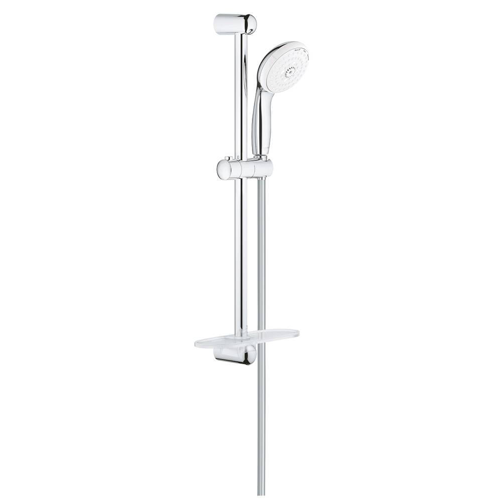 Composto da: - Manopola doccia (art. 28 419); - Asta doccia da 600 mm (27 523 001); - Flessibile Relexaflex da 1750 mm (28 154 002); - Mensola porta oggetti GROHE EasyReach (art. 27 596); GROHE Water Saving (portata limitata a 9,5 l/min). GROHE DreamSpray per un getto sempre perfetto. Sistema anticalcare SpeedClean. Bordo in silicone antiurto. Senza Limitatore di Portata