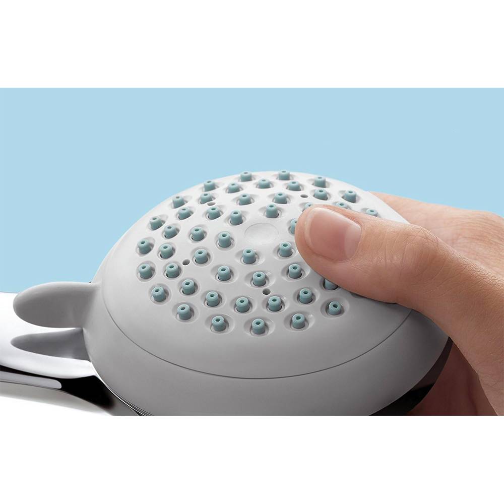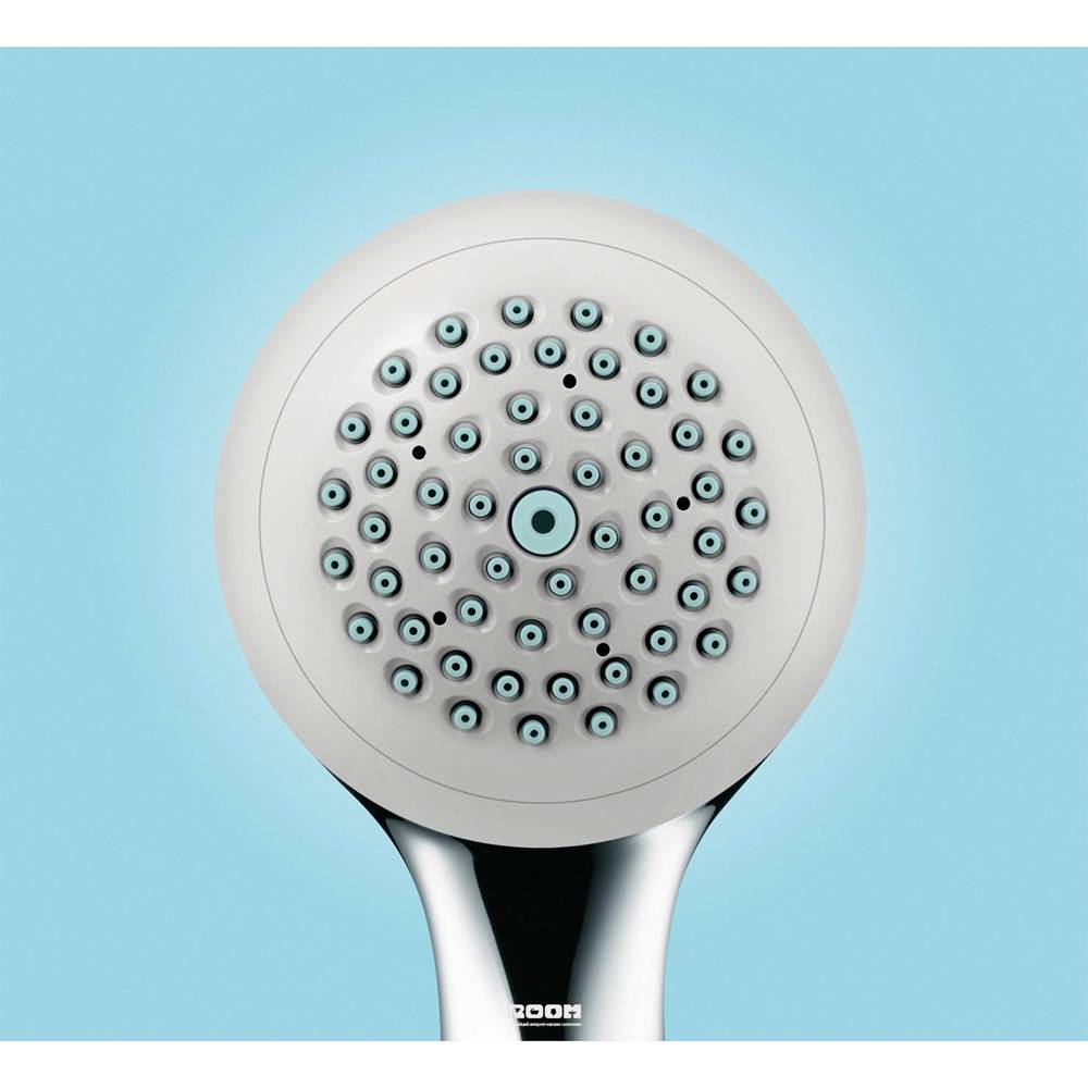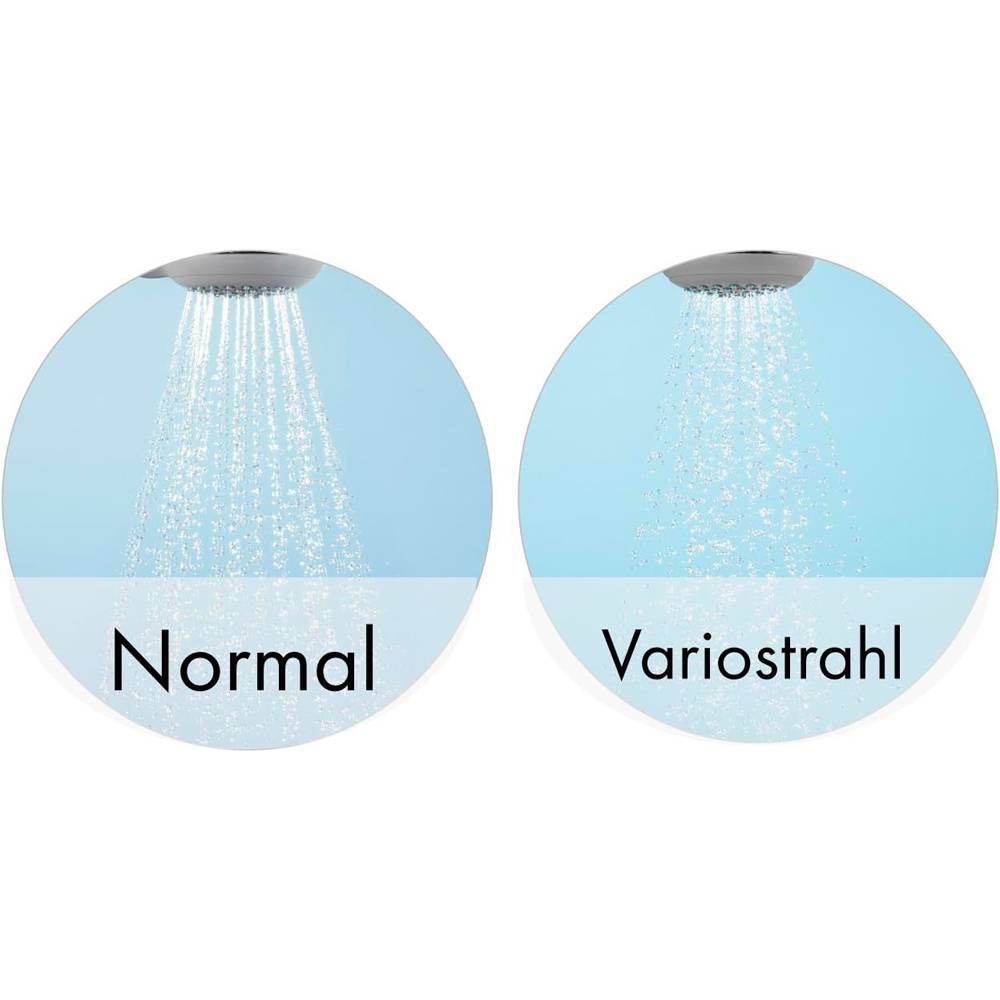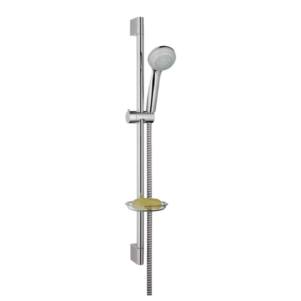 Composto da: - Doccetta; - Asta doccia; - Flessibile doccia; - Cursore; - Portasapone. Diametro doccetta 85 mm. Tipo di getto: normale, getto Vario. getto regolaile tramite levetta selettrice. Cursore regolabile di 90°, verticalmente e orizzontalmente. Portata 17 l/min. Diametro asta doccia 22 mm. Profilo tubo montante circolare. Supporto parete in plastica. Montaggio a parete: Vite.