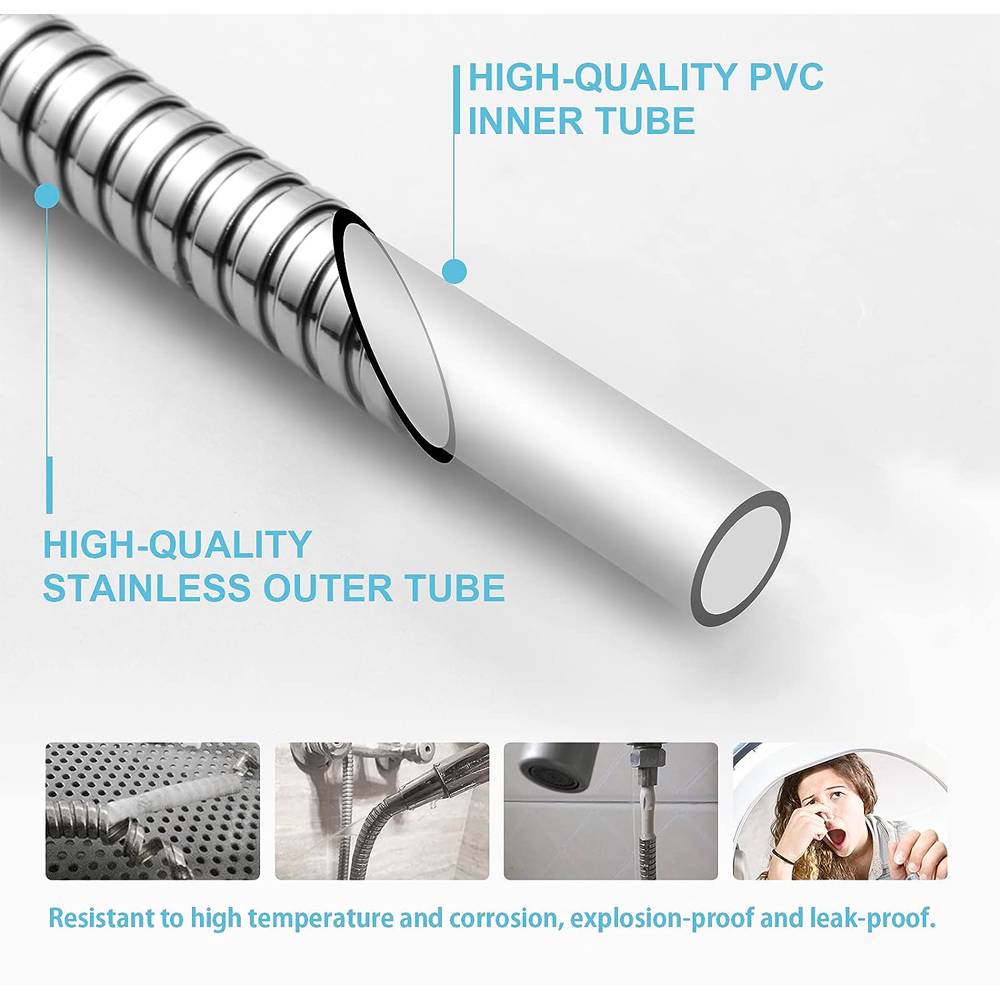 Realizzati in acciao Inox AISI 302 MM1 elettro lucidato. Maglia non estensibile, terminali in ottone cromato 1/2" x 1/2" conico. Calotta antitorsione. Doppia Aggraffatura.