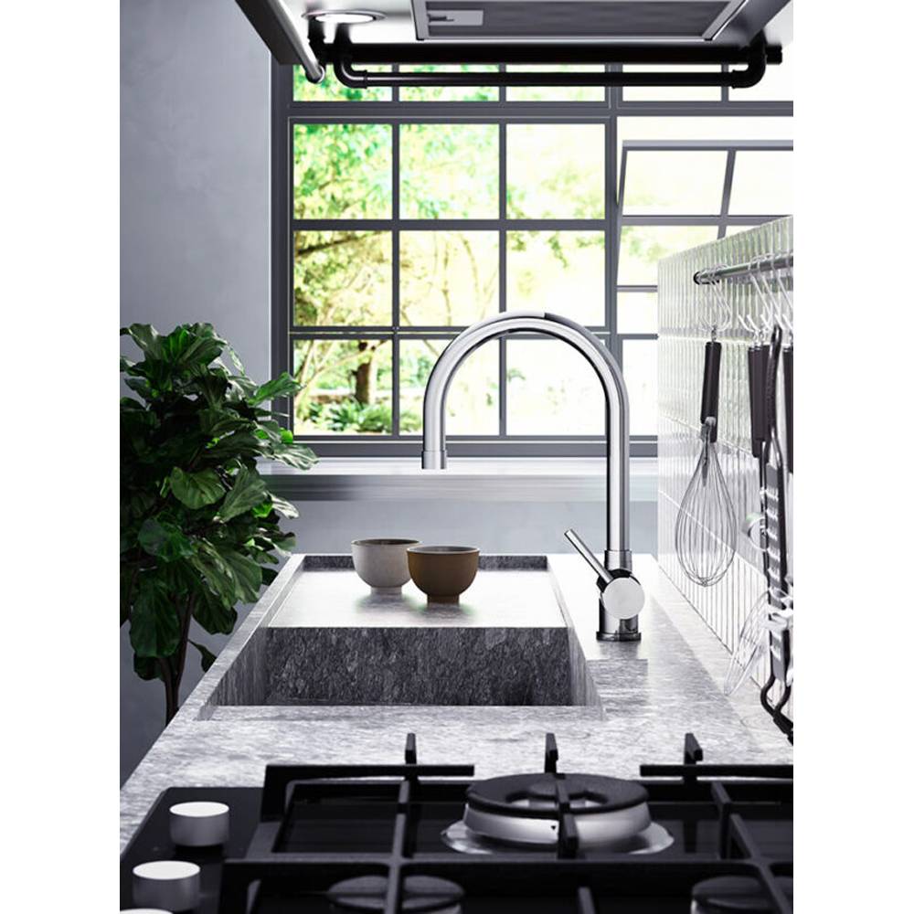 Miscelatore lavello monoforo con canna orientabile. Fornito completo di: - Aereatore M22x1" F; - Set 2 flessibili Inox 3/8" G. Cartuccia di ricambio nostro codice 04198.