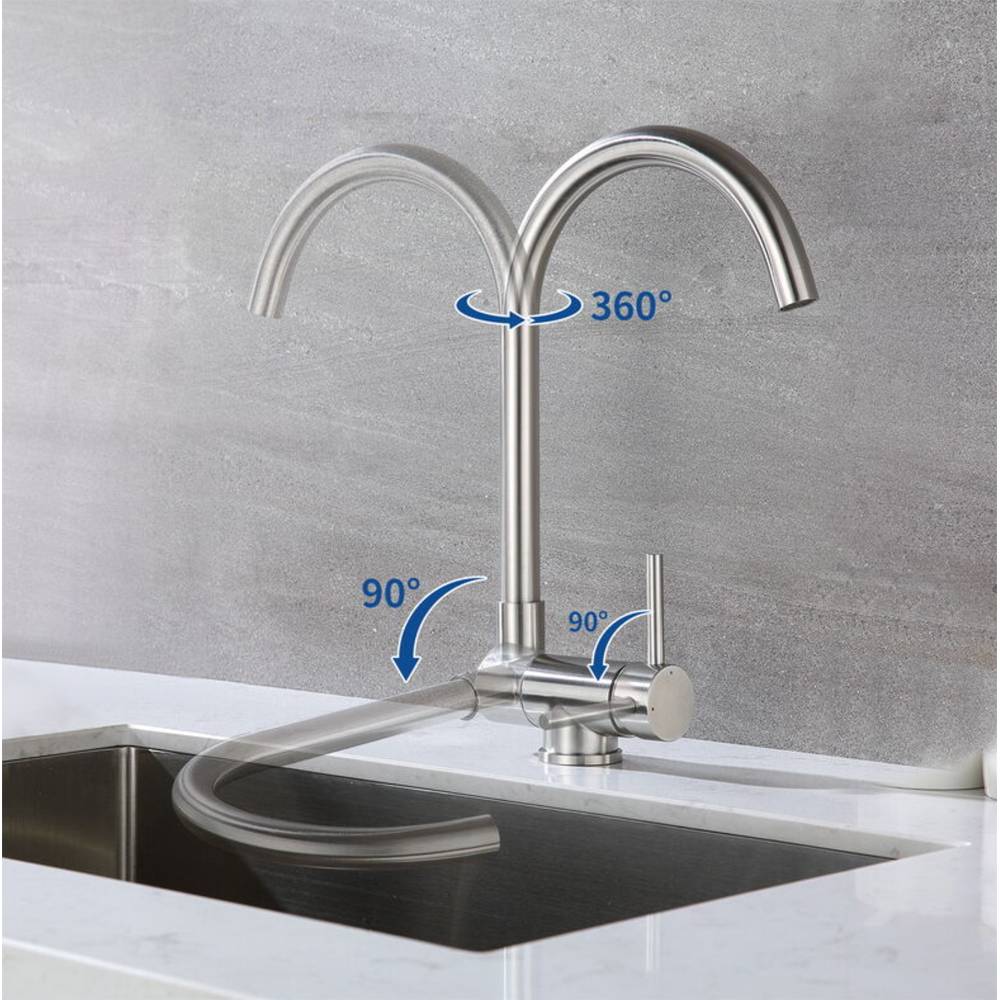 Miscelatore lavello monoforo con canna orientabile e reclinabile, Fornito completo di: - Aereatore M22x1"; - Set 2 flessibili Inox 3/8" G. Altezza minima per apertura finestra 76 mm. Cartuccia di ricambio nostro codice 04200.