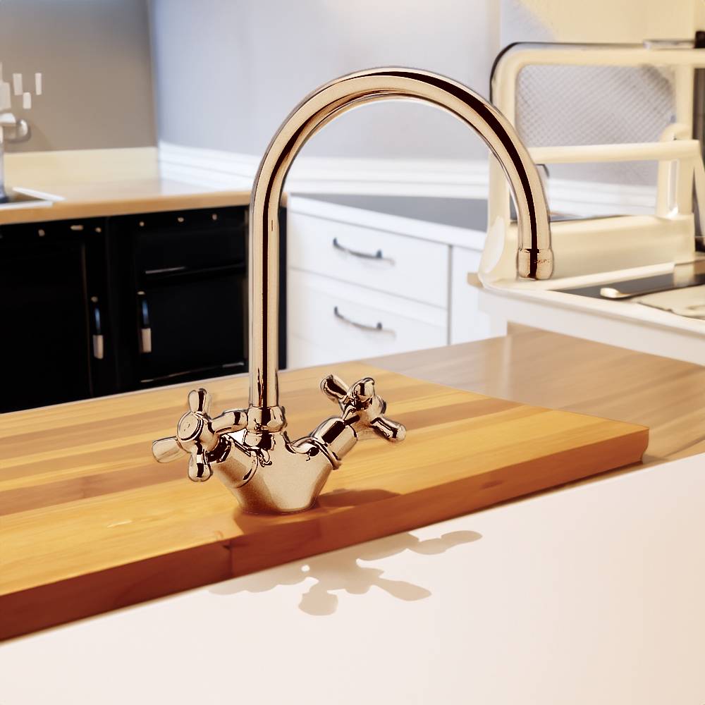 Miscelatore lavello Monoforo, con canna orientabile ad Ombrello Ø18x185 mm. Completo di: - Aereatore M22x1" - Set 2 flessibili Inox 3/8" G. Vitoni in ceramica di ricambio nostro articolo 04186.