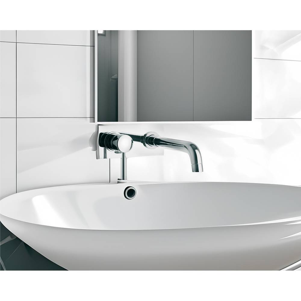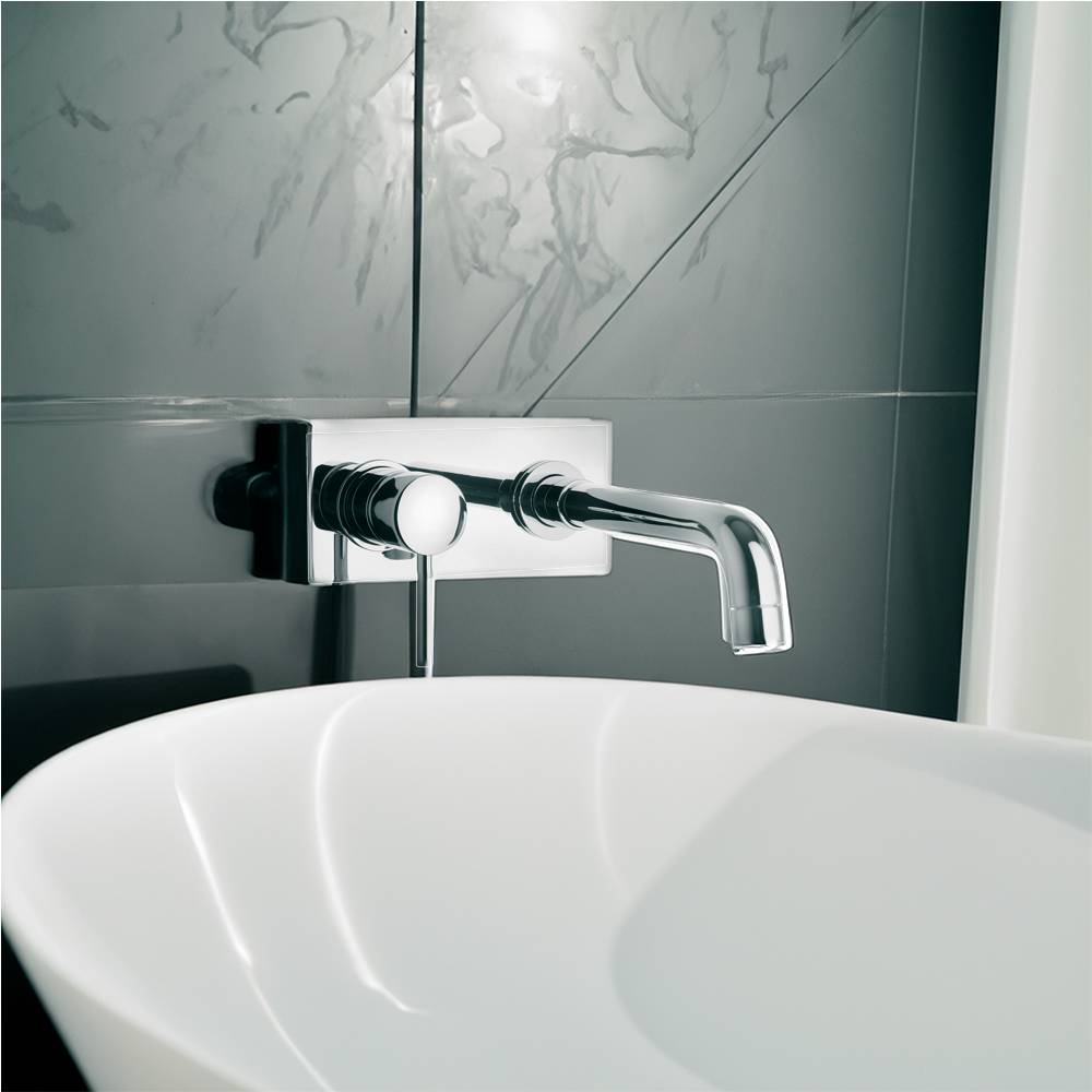 Miscelatore Lavabo per installazione a parete. Bocca a muro da 200 mm. Dimensioni Piastra: 180x80 mm. Fornito completo di: - Piletta di scarico da 1"1/4; - Set Flessibili Cartuccia Ø 35mm, Bassa. Modello DS02