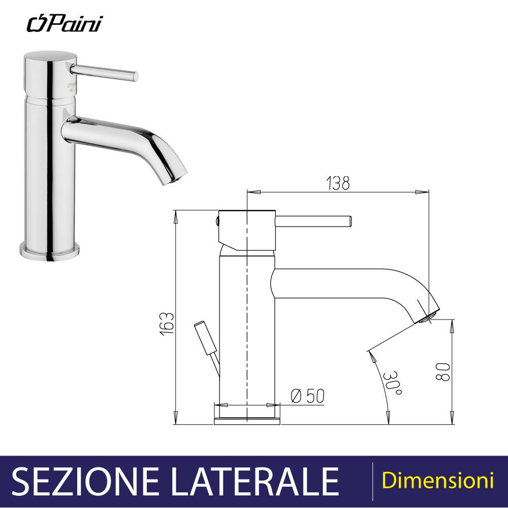 Miscelatore monoforo lavabo, finitura Cromo. Fornito completo di Piletta di Scarico 1"1/4. Cartuccia di ricambio, nostro codice 0422202