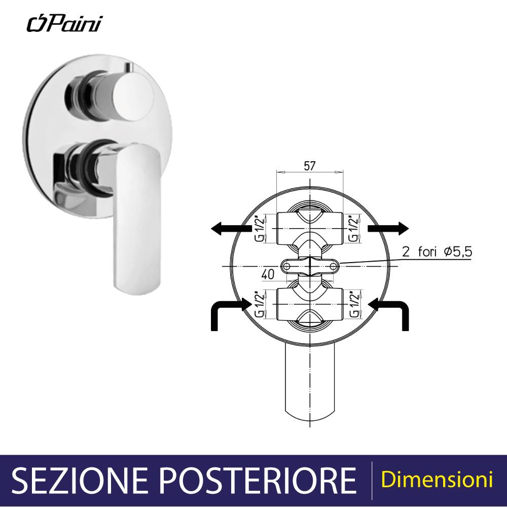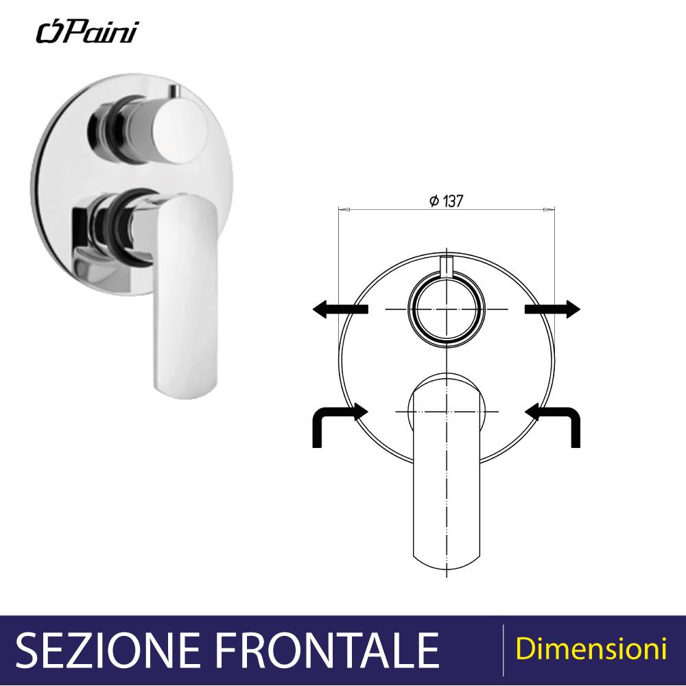 Miscelatore incasso doccia con deviatore. Due Entrate e Due Uscite 1/2". Piastra Ø 137 mm. Cartuccia Ø 35mm, Bassa. Modello DS02