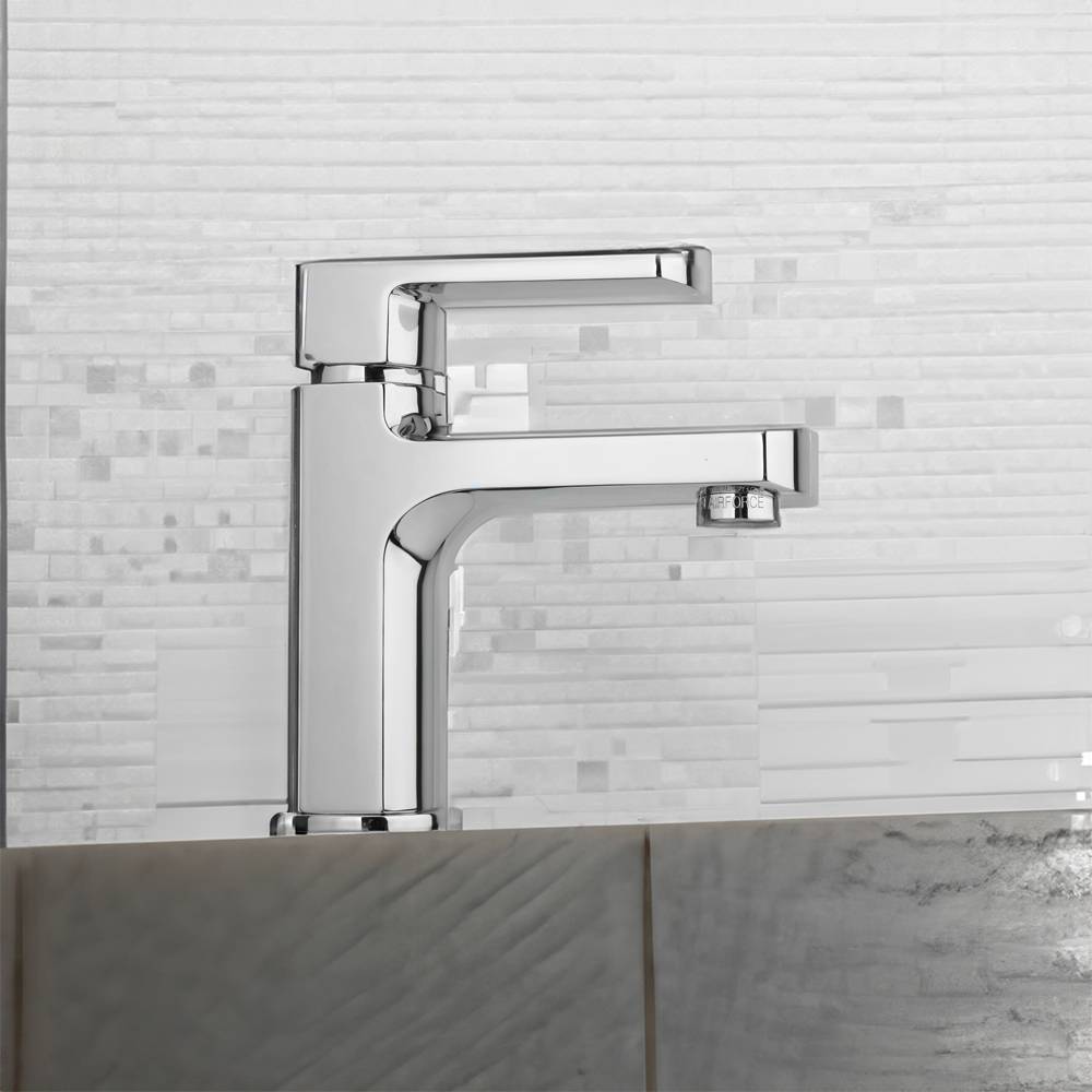 Miscelatore Lavabo monoforo cromato. Fornito completo di Piletta di Scarico automatica da 1"1/4. Cartuccia Ø 35mm, Alta. Modello DS01