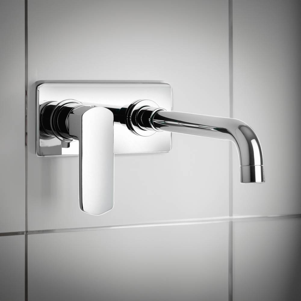 Miscelatore con bocca a muro Cromato. Piastra 180 x 80 mm. Lunghezza Bocca 200 mm. Cartuccia Ø35 mm, Bassa. Modello DS02