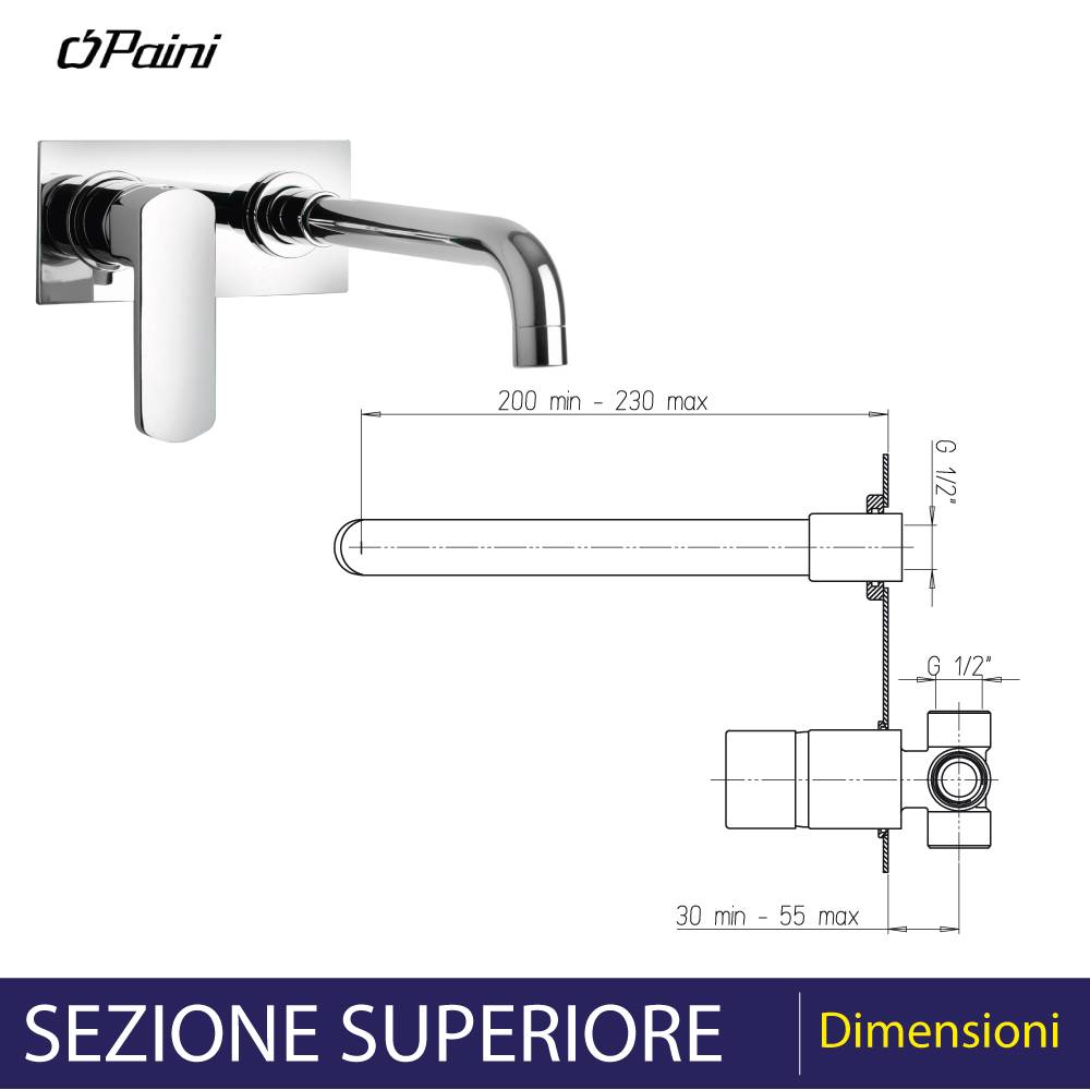 | 03722 | MISCELATORE LAVABO "STILE" CON BOCCA A MURO Bocca cm 20 86CR208PC8