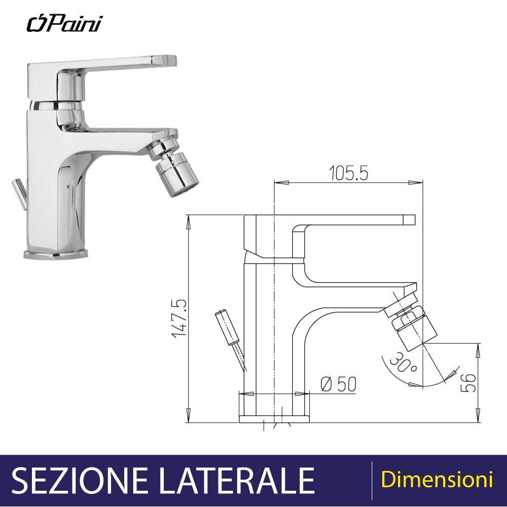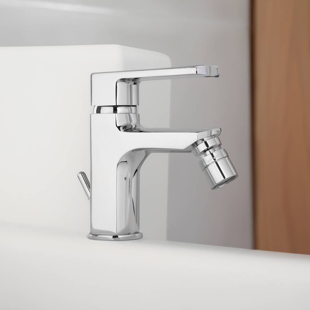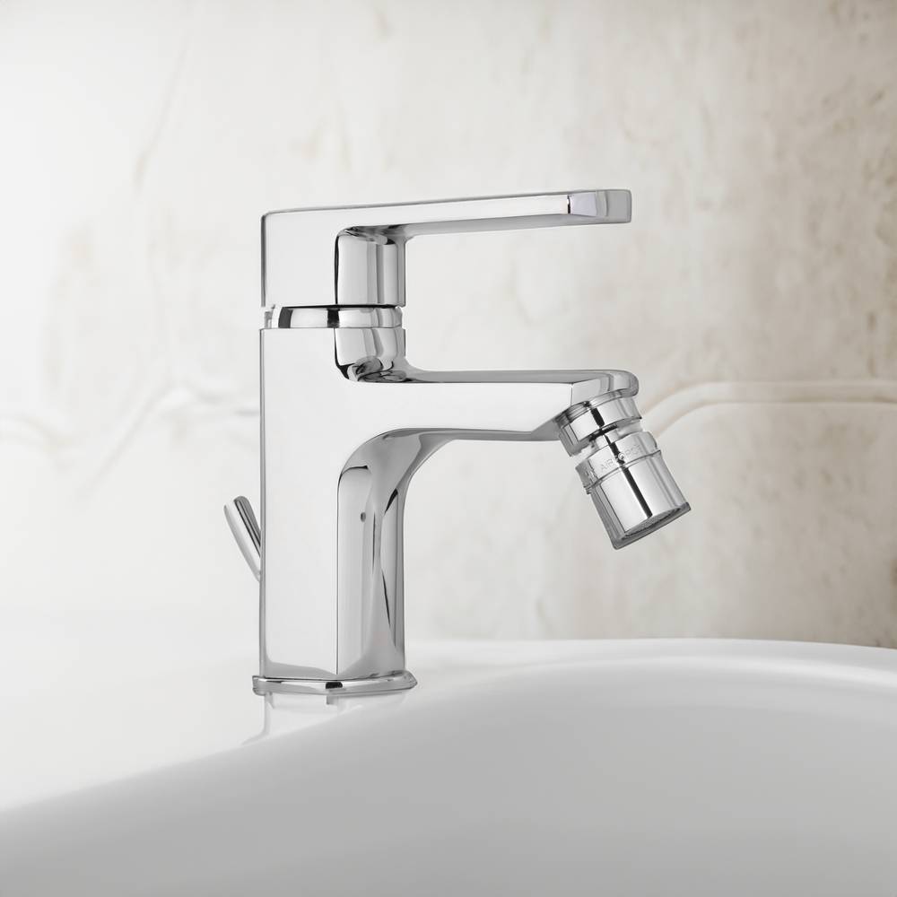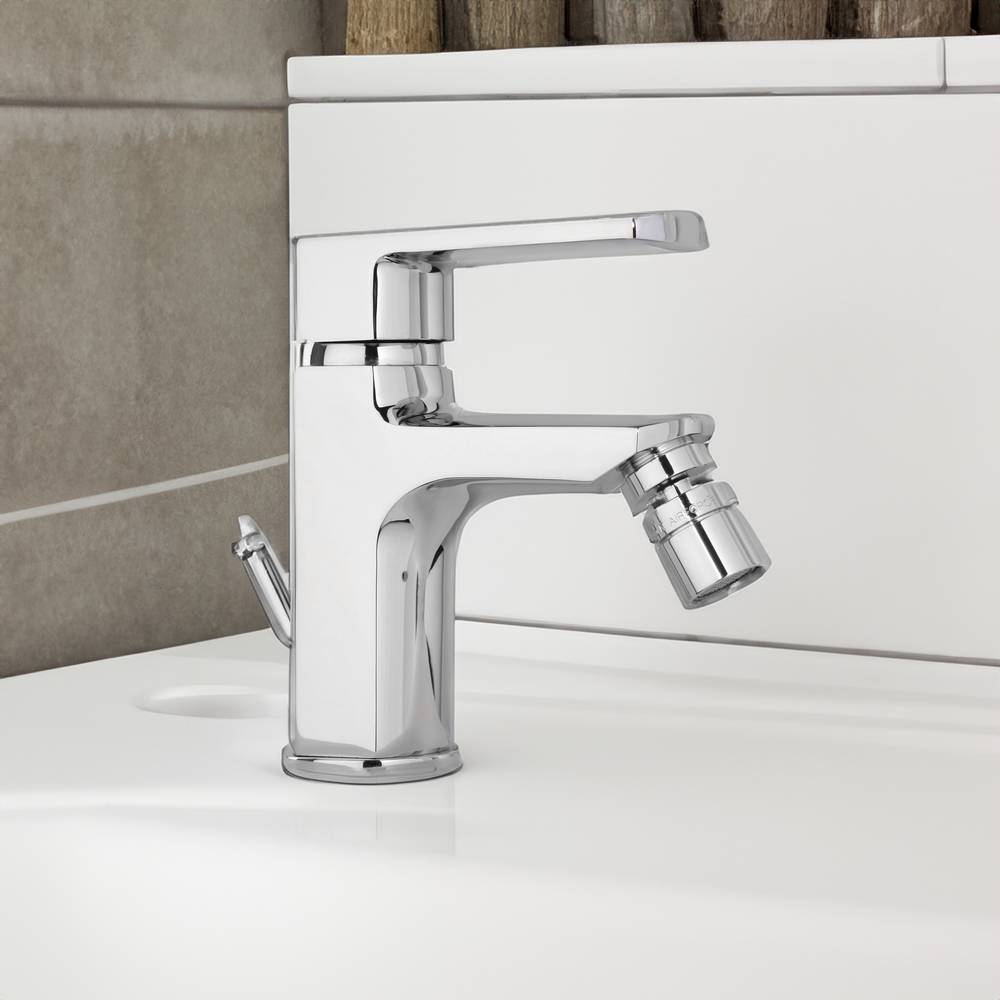 Miscelatore Bidet Monoforo, cromato. Fornito completo di Piletta di Scarico Automatico 1"1/4. Cartuccia Ø 35mm, Alta. Modello DS01