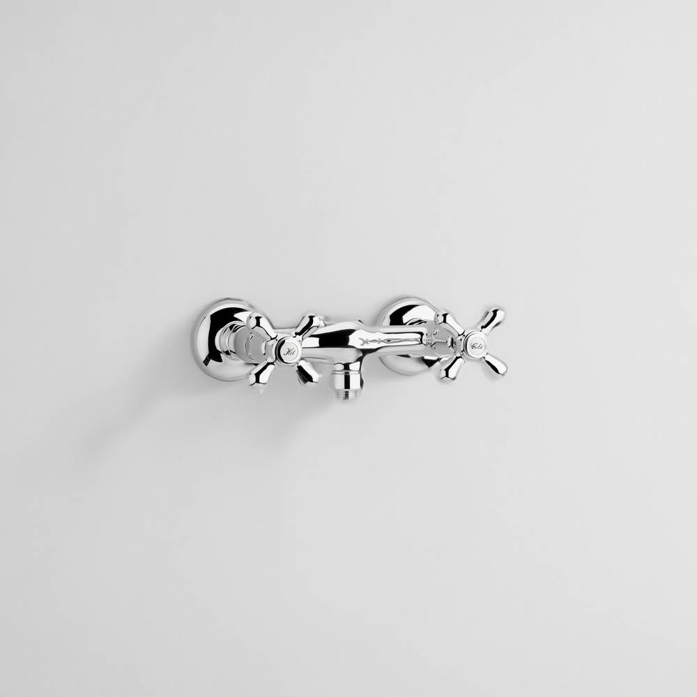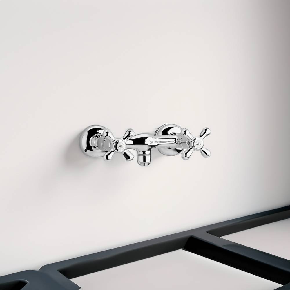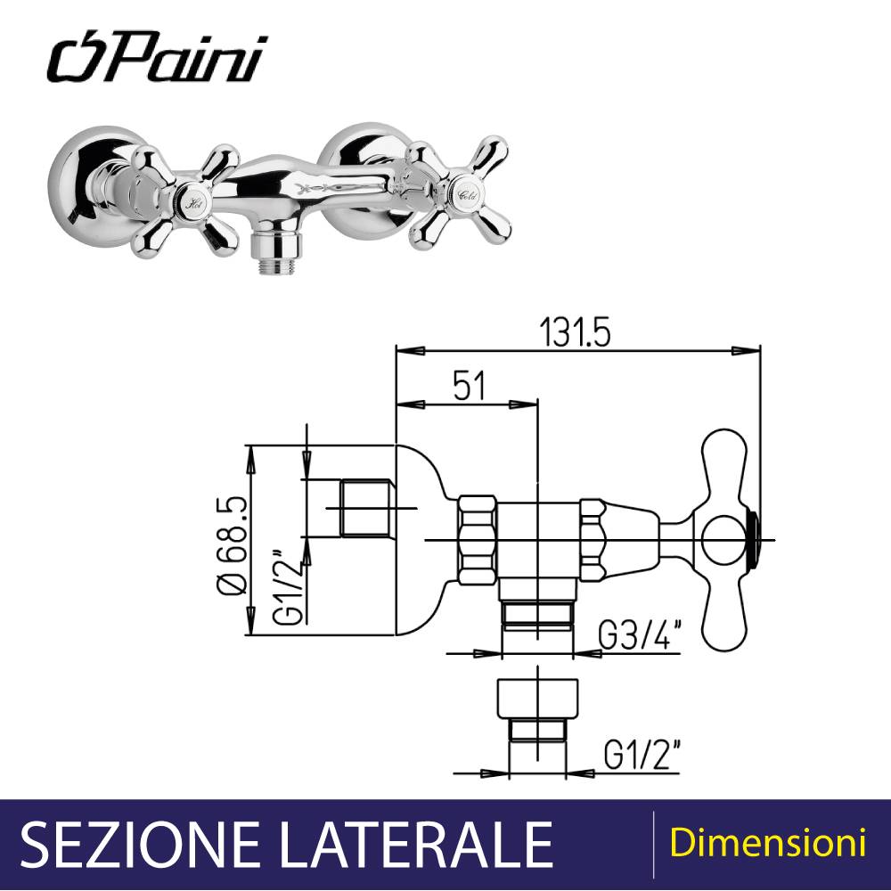 Gruppo doccia Esterno Vitone ceramicato. Finitura: Cromo Stile rubinetteria tradizionale. Attacco flessibile 1/2".
