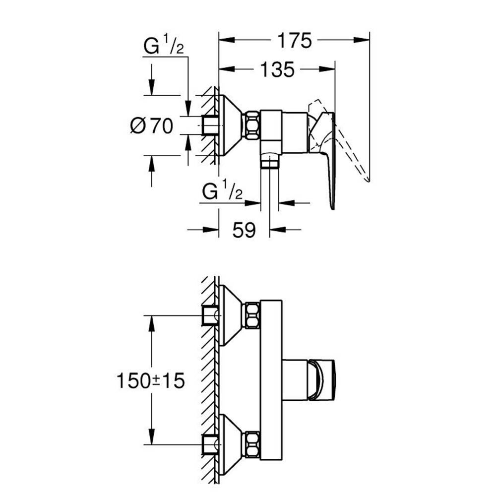 Fornito senza accessori doccia. CARATTERISTICHE PRINCIPALI DEL PRODOTTO Leva in metallo. Cartuccia a dischi ceramici GROHE Long-Life da 35 mm. Dotato di serie di limitatore di temperatura. Dotato di serie di limitatore di portata regolabile. Attacco del flessibile da 1/2" con valvola di ritegno incorporata. Con valvola di ritegno incorporata. Raccordi ad S. Rosone metallico