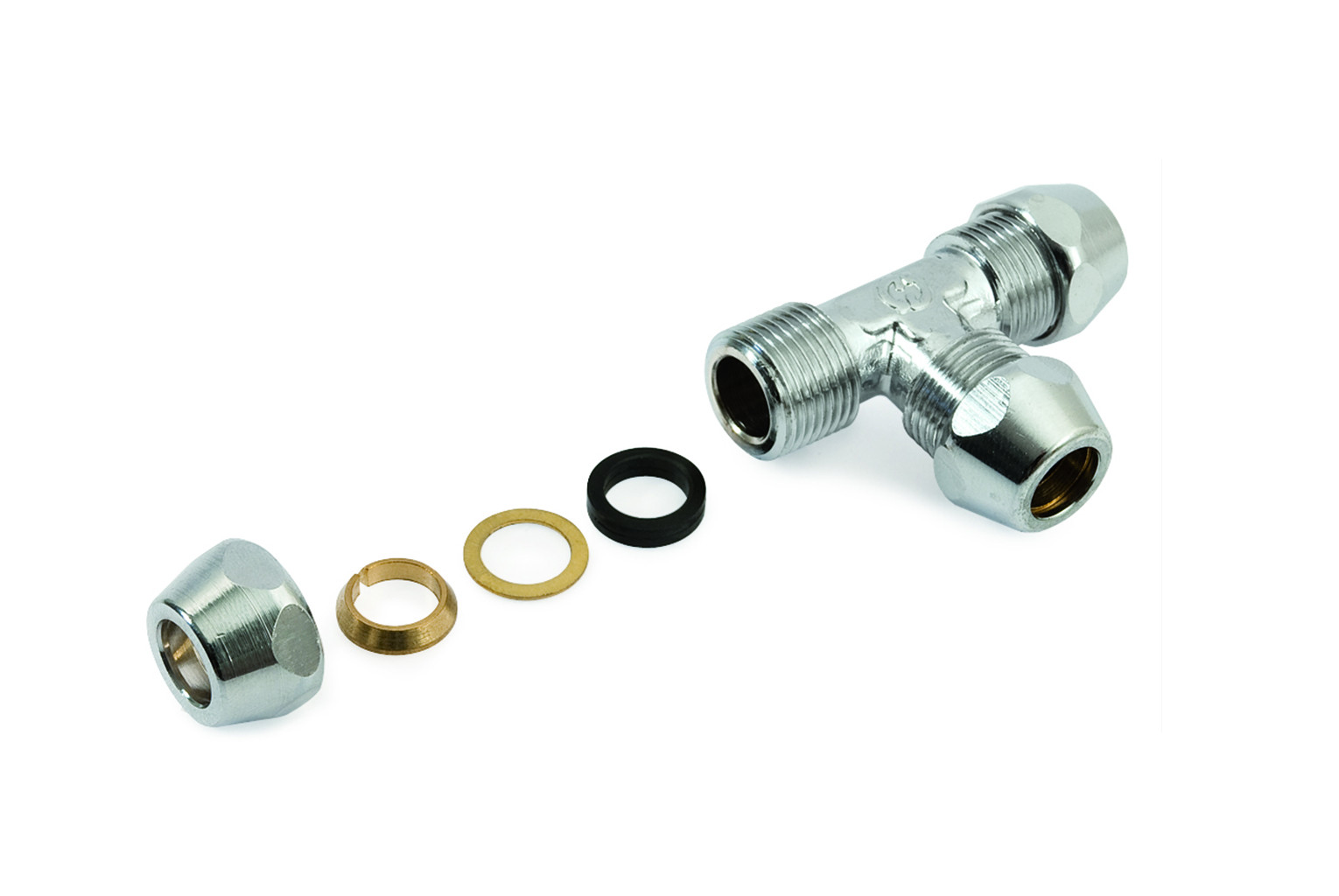 | 0469804 | TEE PER TUBETTO RAME IN OTTONE CROMATO Ø12