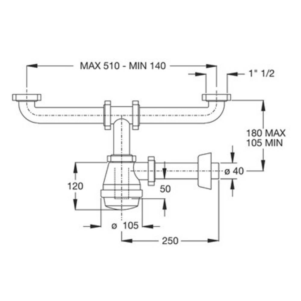 | 0479802 | SIFONE PER LAVELLO A 2 VIE "FIASCA" 1"1/4 x Ø32 mm 1380CP54B0