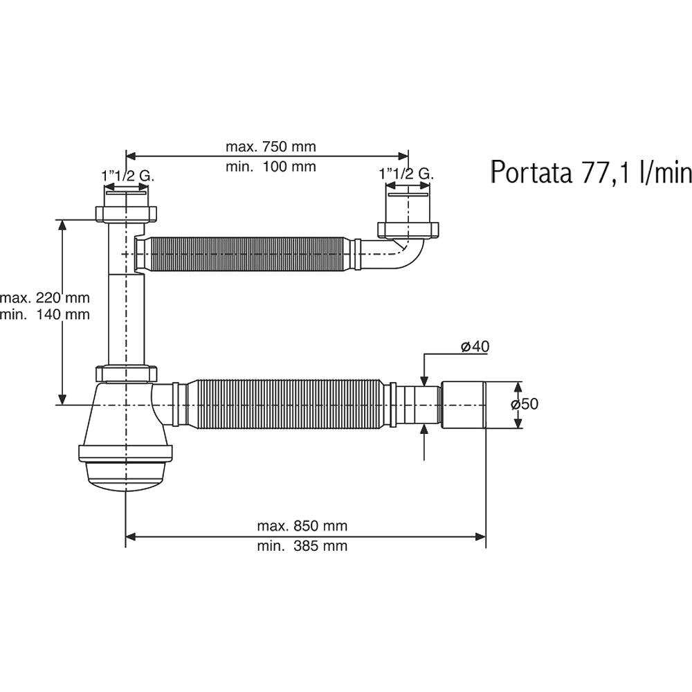 | 04808 | SIFONE FLESSIBILE PER LAVELLO A 2 VIE "FLEXYBON" 1"1/2 x Ø40-50 mm 1032EX45B0