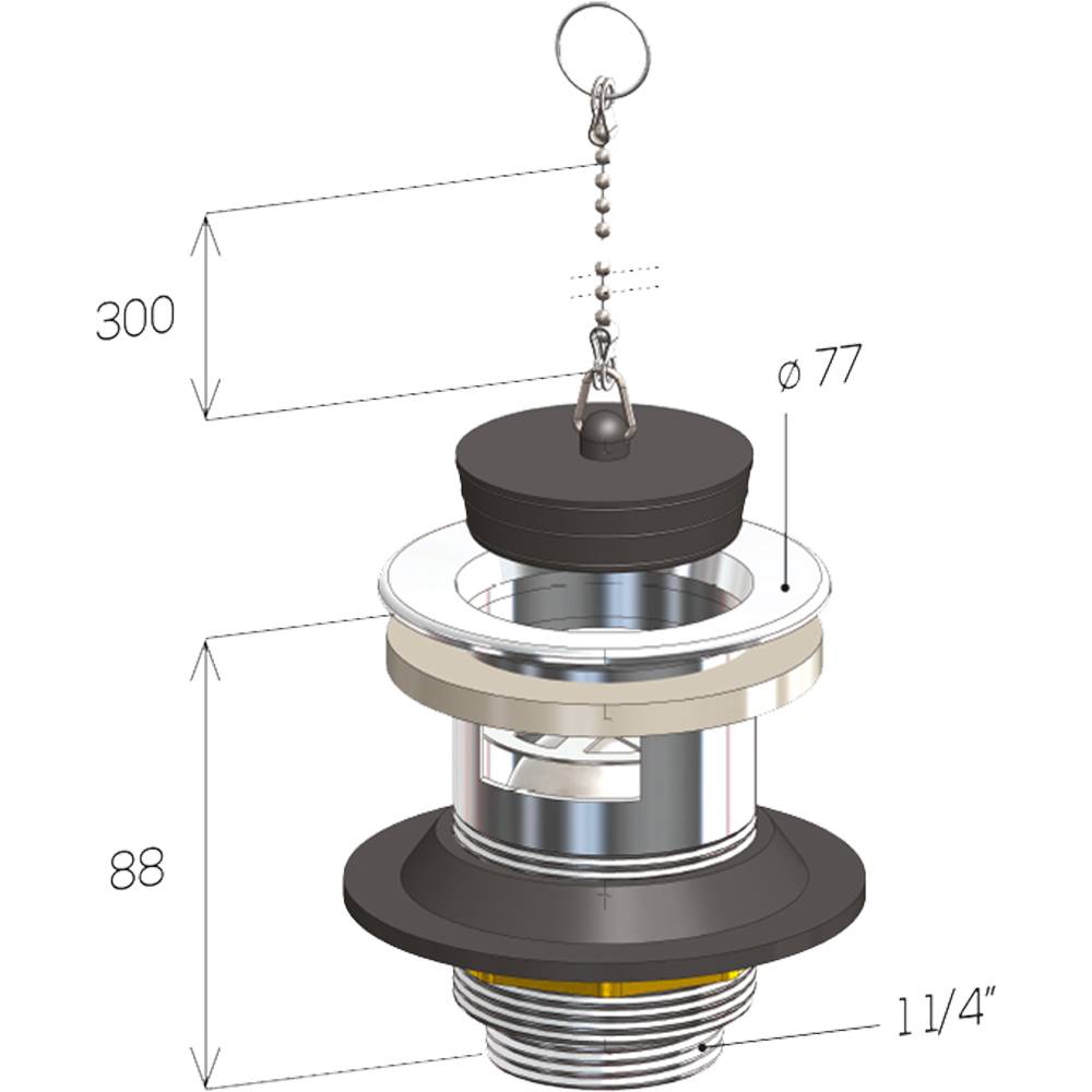 Per lavatoi in ceramica e vasche in cemento. Con foro per troppo pieno. Con Tappo a Catenella