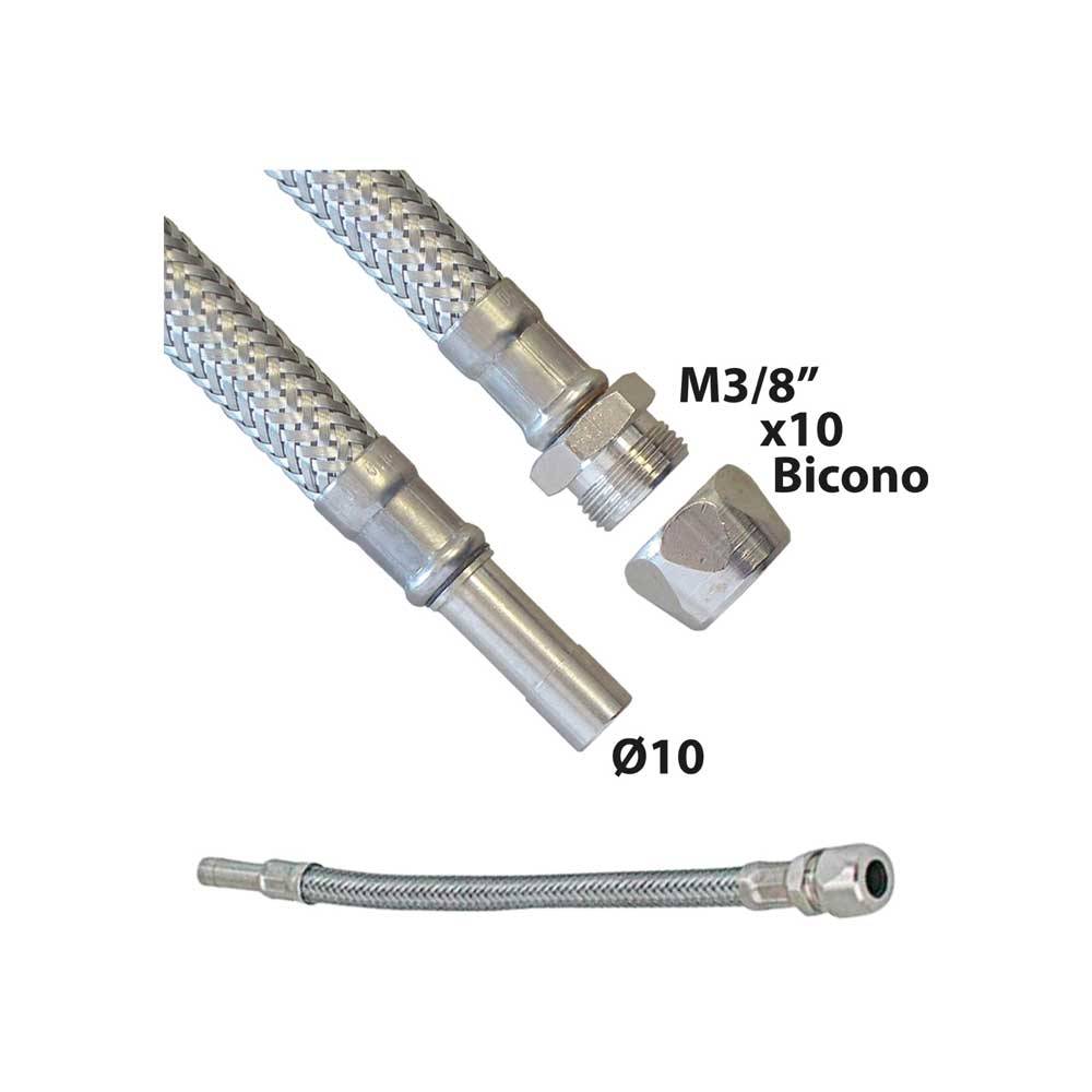 | 0537402 | FLESSIBILE IN ACCIAIO INOX M3/8"x10 BICONO CON TRONCHETTO Ø10 30 cm - DN10