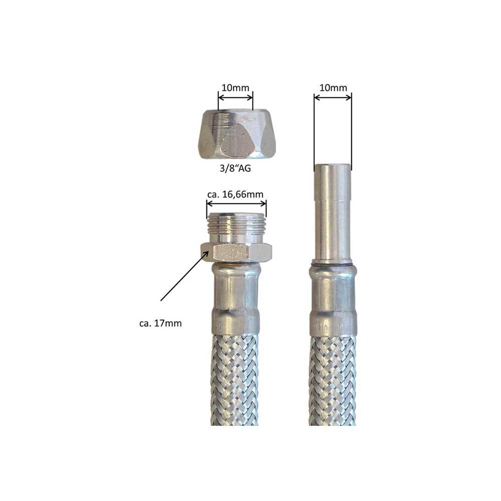 | 0537406 | FLESSIBILE IN ACCIAIO INOX M3/8"x10 BICONO CON TRONCHETTO Ø10 40 cm - DN10