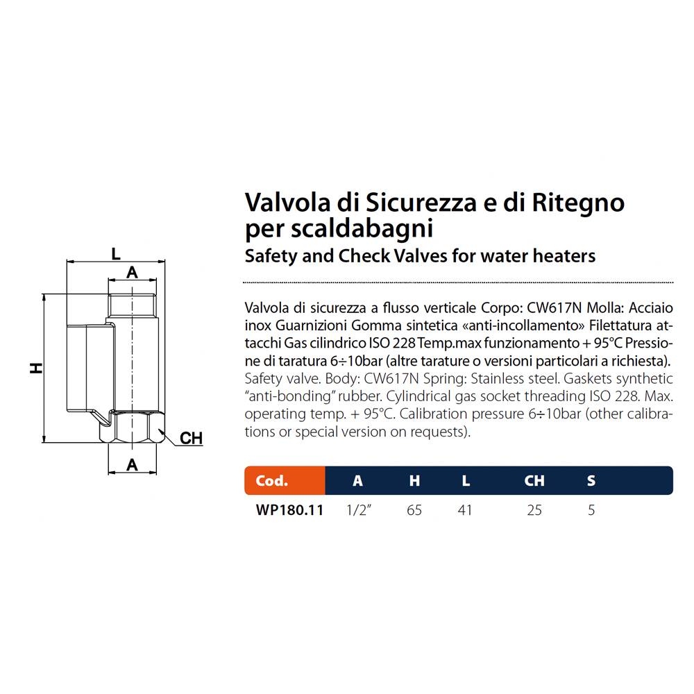 | 05470 | VALVOLA DI SICUREZZA E DI RITEGNO A FLUSSO VERTICALE REGOLABILE PER SCALDABAGNO 1/2" MF