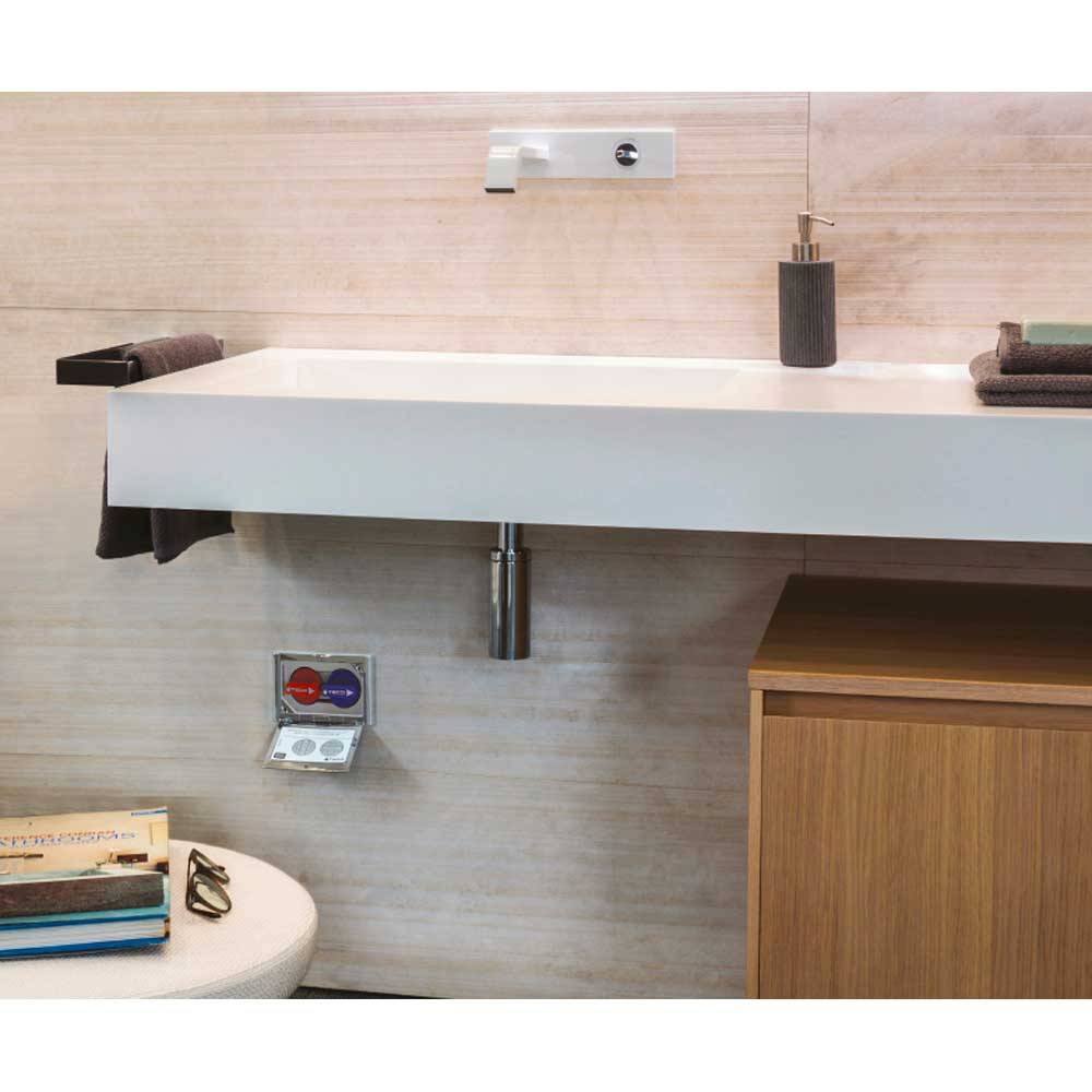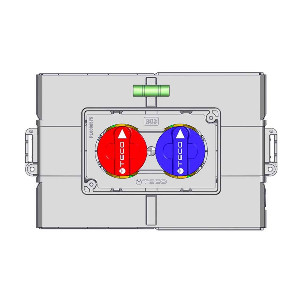 DN 15 - PN 10 (10 bar). Ad incasso. Kit con doppia valvola a sfera estraibile, fredda e calda, conforme alla norma DIN EN 13828 con manovra leggera "soft turn", completo di scatola sandwich ispezionabile. Corpo in ottone con sistema Top Entry. Squadre di Fissaggio e protezione cantiere incluse. Chiusura ed apertura tramite azionamento delle maniglie. Placca di copertura apribile manualmente da ordinare separatamente, nostro codice 05737. Temperatura d'esercizio : 0°C/ +95°C.