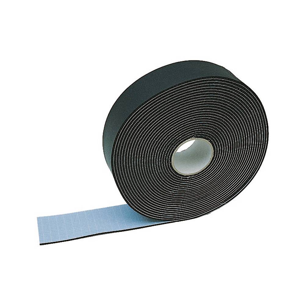 Nastro isolante in elastomero espanso a cellule chiuse con adesivo rinforzato con rete e foglio di protezione siliconato adatto per l'isolamento di tubazioni per refrigerazione impianti di riscaldamento e solari, utilizzabile anche come finitura sopra le giunzioni. Caratteristiche tecniche: Materiale: gomma (autoestinguente classe 1) T.E. : - 45°C ÷ + 105°C Conducibilità termica: lambda 0,039 W/m°a 40° Permeabilità al vapore: 10.000 µ Misure: H 50 mm spessore 3 mm Colore: nero