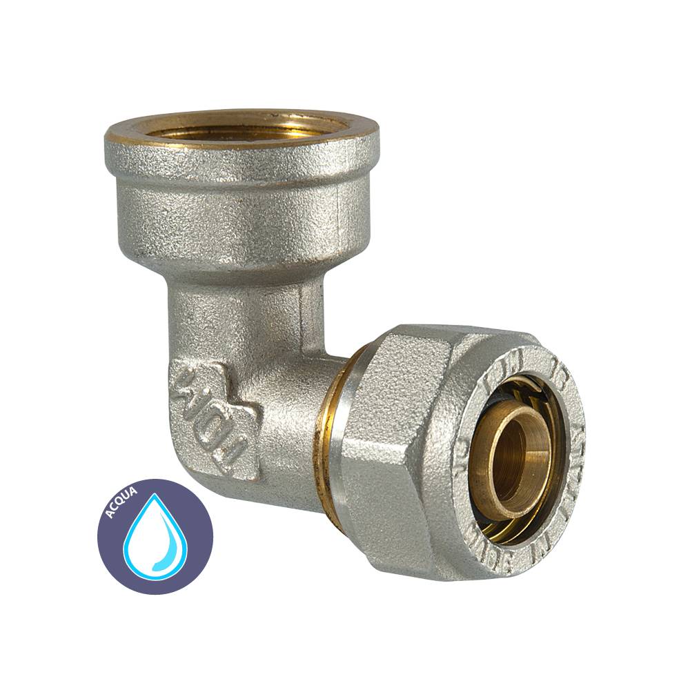 | 0755606 | RACCORDO CURVO FEMMINA A COMPRESSIONE PER TUBO MULTISTRATO TDM 1/2" x Ø20 (2,0) mm 10701220