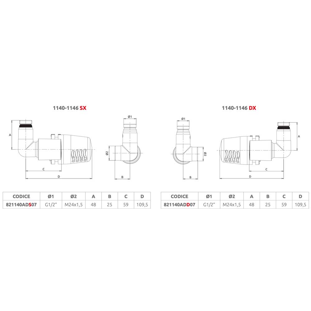 | 0800002 | VALVOLA AD ANGOLO DX TERMOSTATICA ATTACCO RAME, MULTISTRATO E PE-X "DAFNE" CROMO 1/2" - 24x1,5 821140ADD07