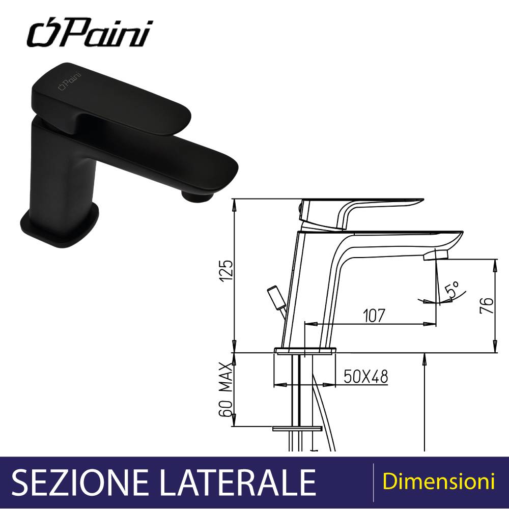 Miscelatore Lavabo monoforo, Finitura Nero Opaco. Fornito nelle versioni completo di Piletta di Scarico automatico da 1"1/4 e senza. Cartuccia Ø 30mm, Aperta. Modello 53CC956D300