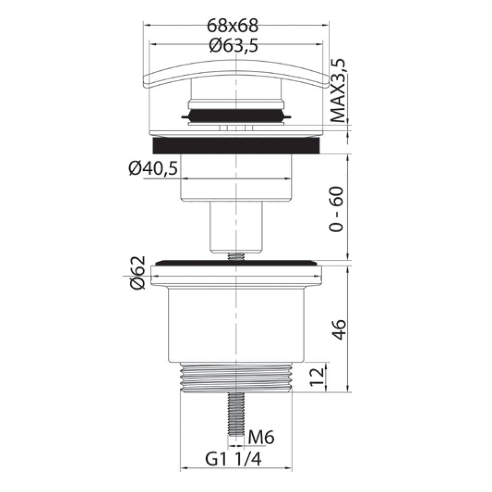| 2340202 | PILETTA CLICK CLACK QUADRATA PER LAVABO NERO OPACO 1"1/4 x 68 mm PCUQNR