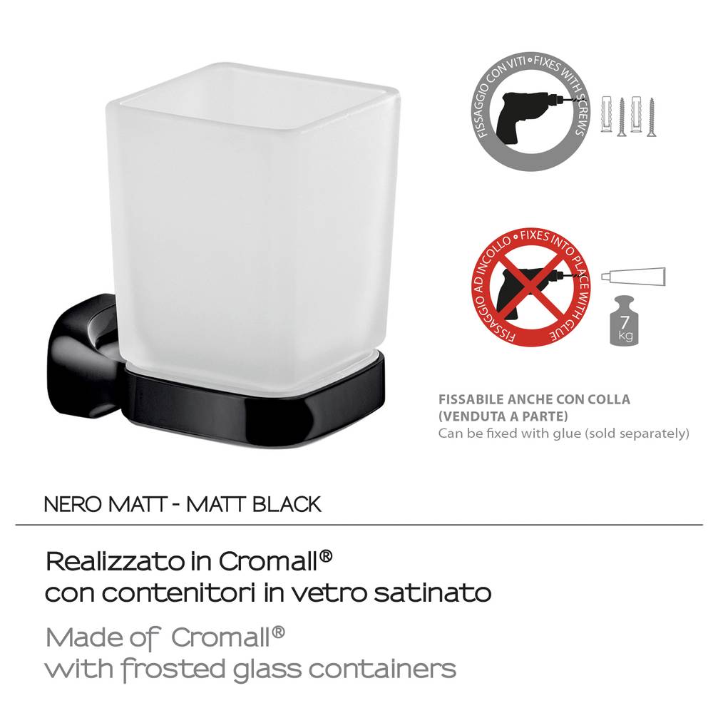 Materiale: Acciaio Inox, Cromall e vetro satinato. Dimensioni: 6,5 x 8,8 x 10 cm