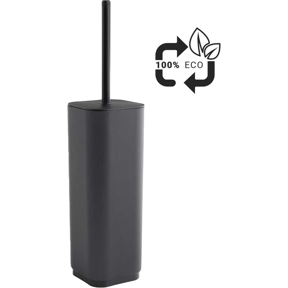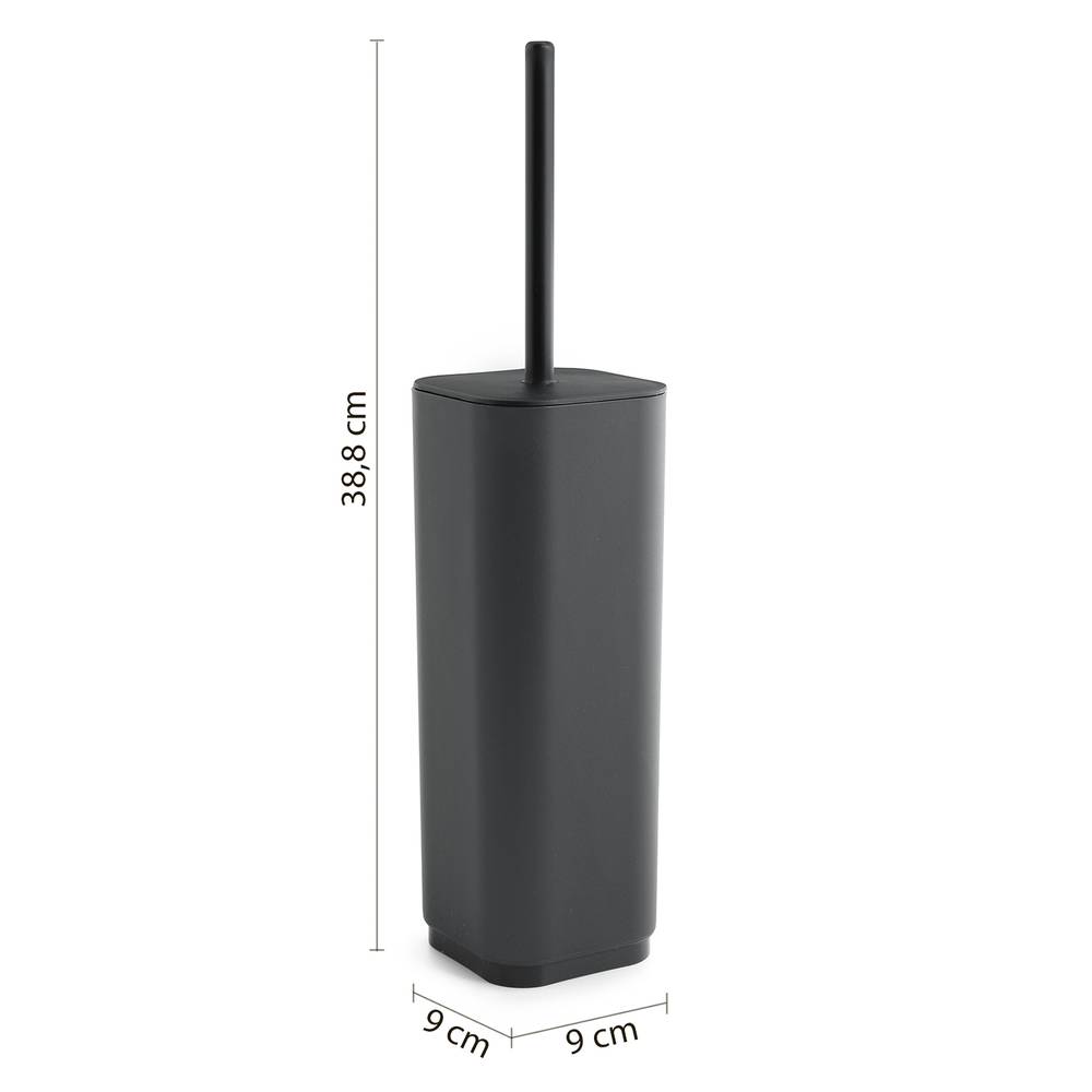 Scopino con ciuffo in setole nero. Materiale: Resine Termoplastiche riciclate 100%, proveniente sa filiera sostenibile italiana. Dimensioni: 9 x 9 x 38,8 cm.