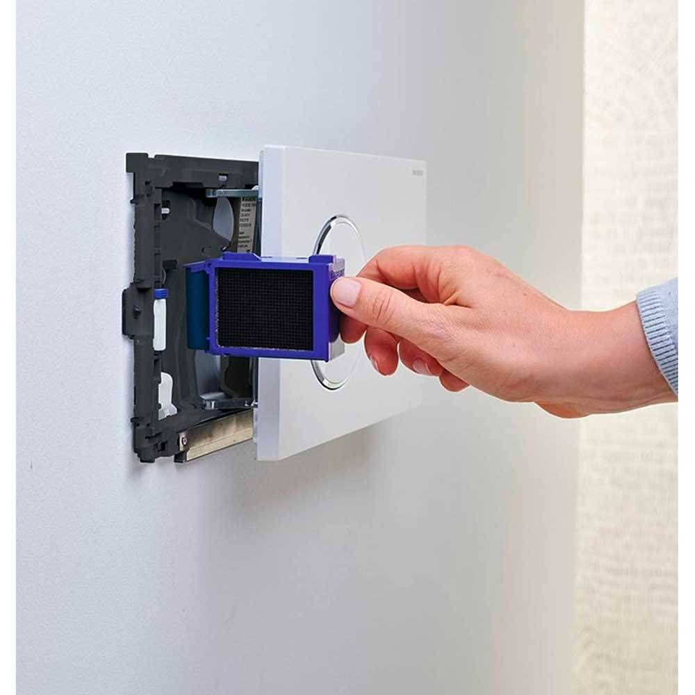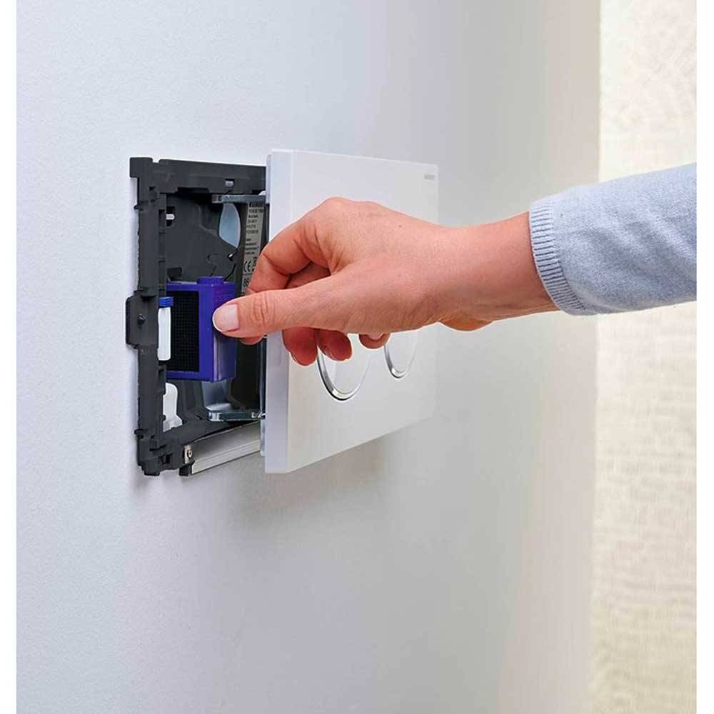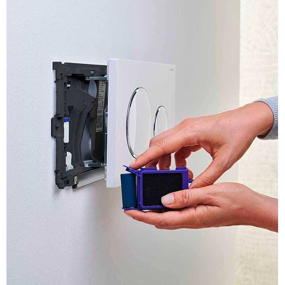 Per cassette di risciacquo da incasso Geberit Sigma 8 cm. Per placche di comando Geberit Sigma 01, Sigma 10, Sigma 20, Sigma 21, Sigma 30, Sigma 50. DOTAZIONE: Telaio di fissagio con meccanismo orientabile, placca di protezione, imbuto di raccolta per stick Geberit Duofresh, portastick con supporto per Stick Geberit Duofresh e 8 Stick Geberit Duofresh.