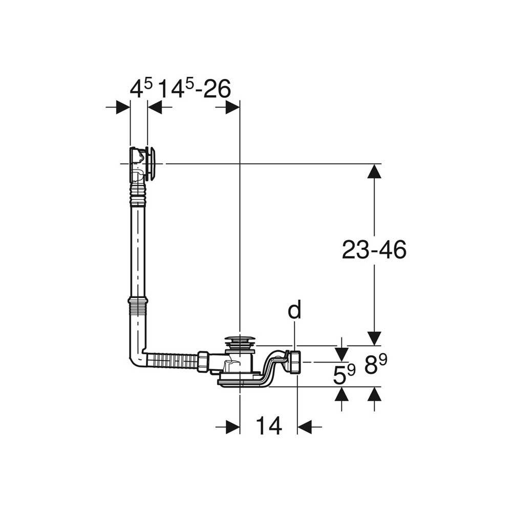 Sifone per vasca da bagno Geberit con azionamento a pressione PushControl, Ø 52 mm, lunghezza 26 cm, con accessori di completamento. Portata di scarico 1 lt/s. Capacità del troppopieno 0.65 lt/s. Altezza della chiusura idraulica 50 mm. Caratteristiche: comando a pressione a filo vasca, con troppopieno, guarnizioni su entrambi i lati su scarico e troppopieno. Dotazione: Piletta di scarico, sifone, accessori di completamento, protezione cantiere, e materiali di fissaggio.
