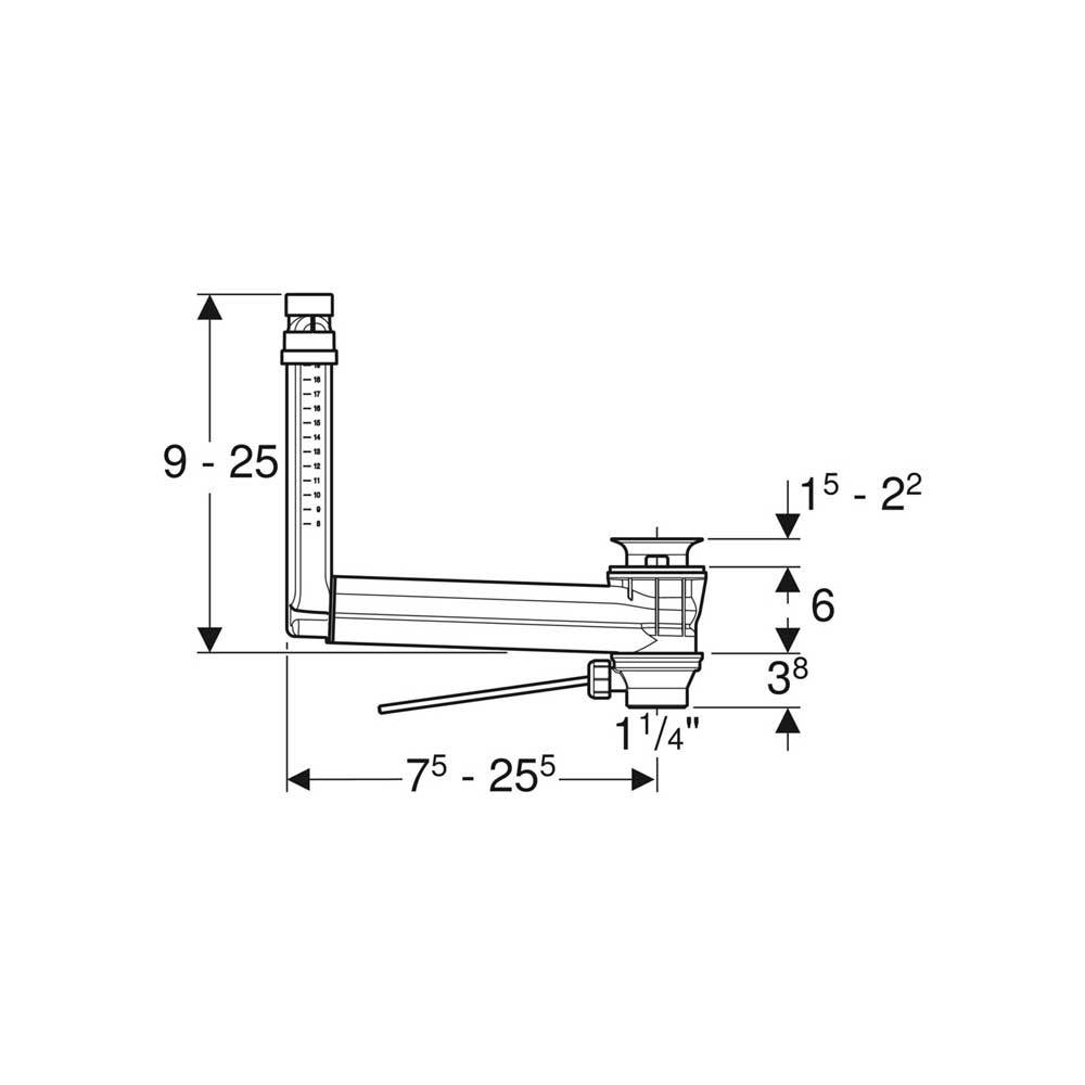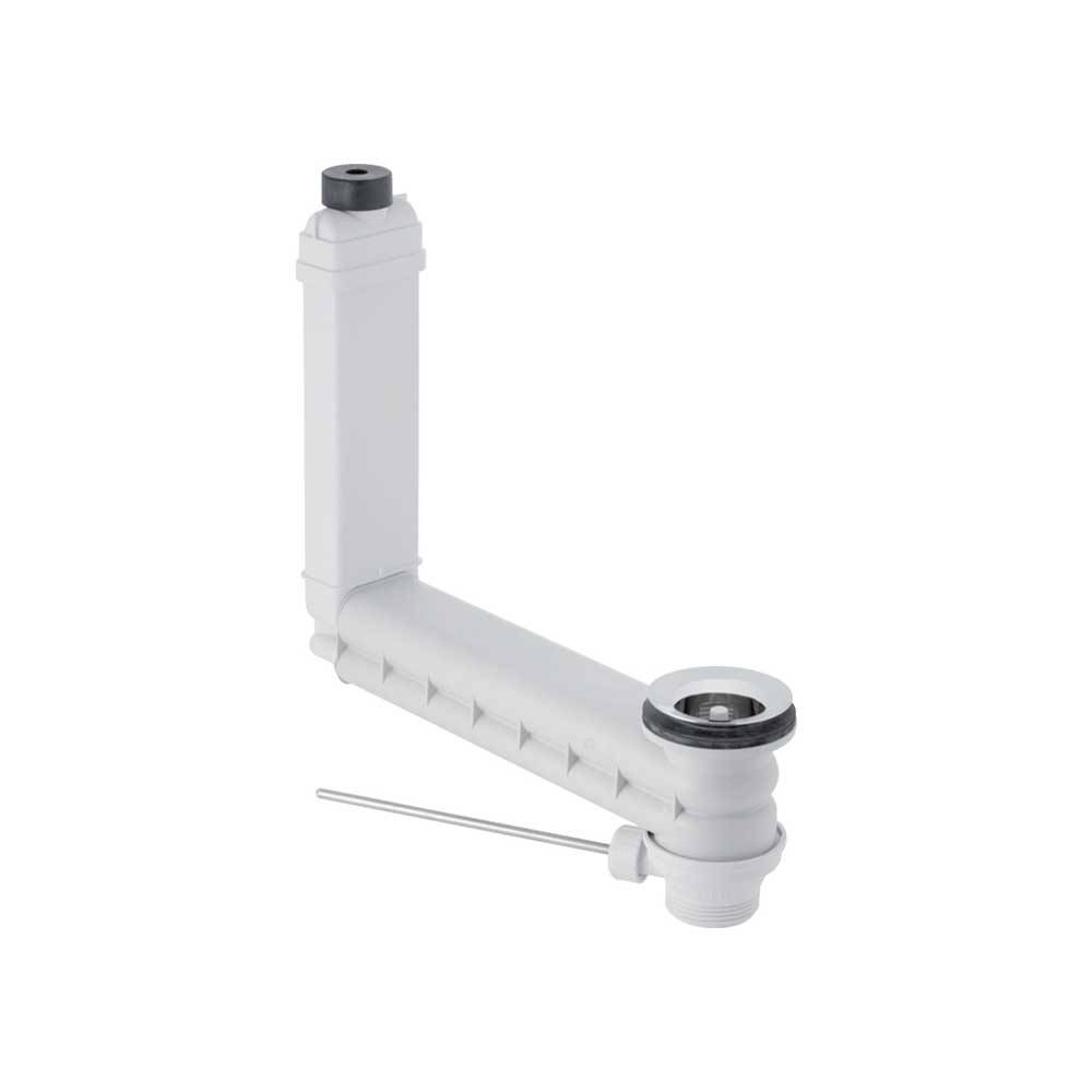 Per lavabi o bidet senza troppopieno visibile. Azionamento a leva. Lunghezza e altezza adattabili al lavabo. Fornito completo di: Piletta di scarico, leva di comando, tappo e allacciamento per lavabo.